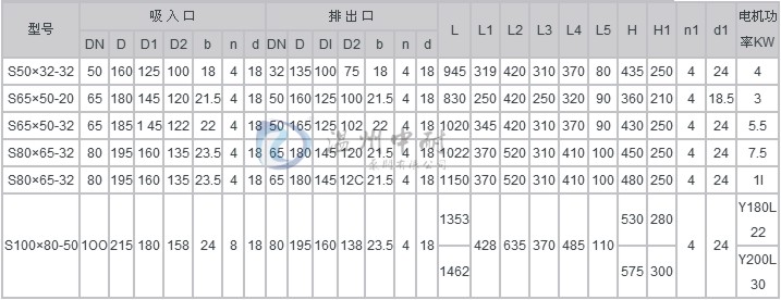 S50×32-32至S100×80-50外形尺寸